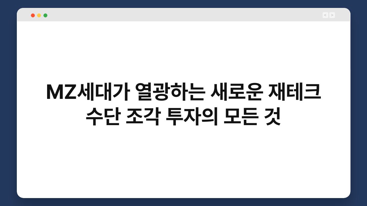 MZ세대가 열광하는 새로운 재테크 수단으로 급부상한 조각 투자는 고가의 실물 자산을 여러 투자자가 작은 단위로 쪼개 공동으로 소유하고, 그로부터 발생하는 수익을 공유하는 혁신적인 투자 방식입니다. 마치 피자 한 판을 여러 명이 나누어 먹는 것처럼, 소액으로도 진입하기 어려웠던 미술품, 부동산, 음악...