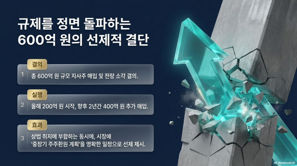포인트 1: 앞으로 3년간 600억 원의 자사주를 소각한다