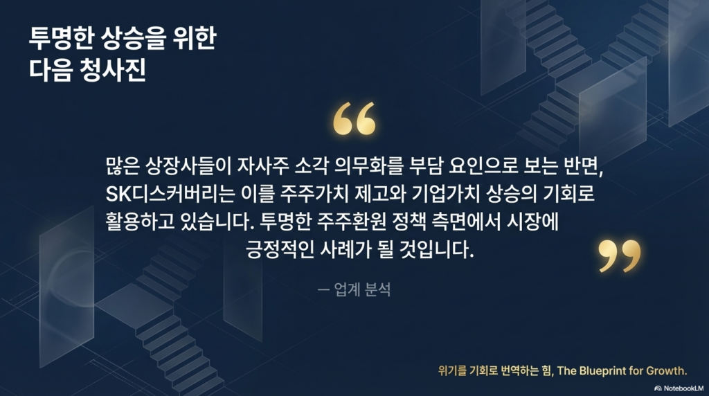 많은 상장사들이 자사주 소각 의무화를 부담 요인으로 보는 반면, SK디스커버리는 이를 주주가치 제고와 기업가치 상승의 기회로 활용하고 있다.