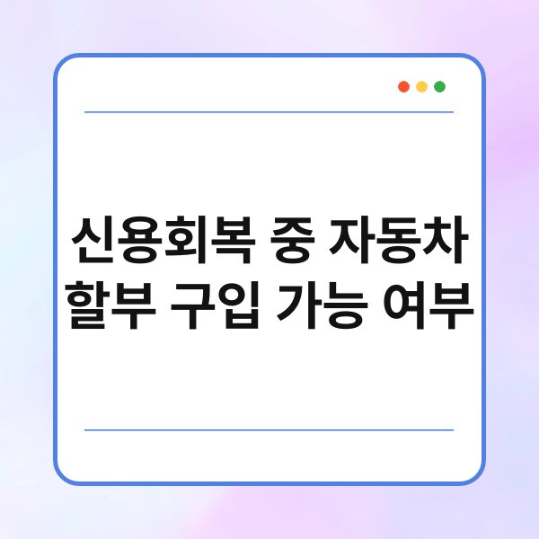 신용회복 중 자동차 할부 구입 가능 여부 2026-03-21 작성자: nuwrdtan 새로운 시작을 꿈꾸며 자동차 구입을 고민하는 신용회복 중인 분들이 많으실 겁니다. 특히 '신용회복 중 자동차 할부 구입'이라는 키워드는 많은 분께 현실적인 궁금증을 안겨주는 주제입니다. 과연 신용회복 절차를 밟고 있는 상황에서도 꿈에 그리던 자동차를 할부로 구매할 수 있을까요? 이 글에서는 신용회복...